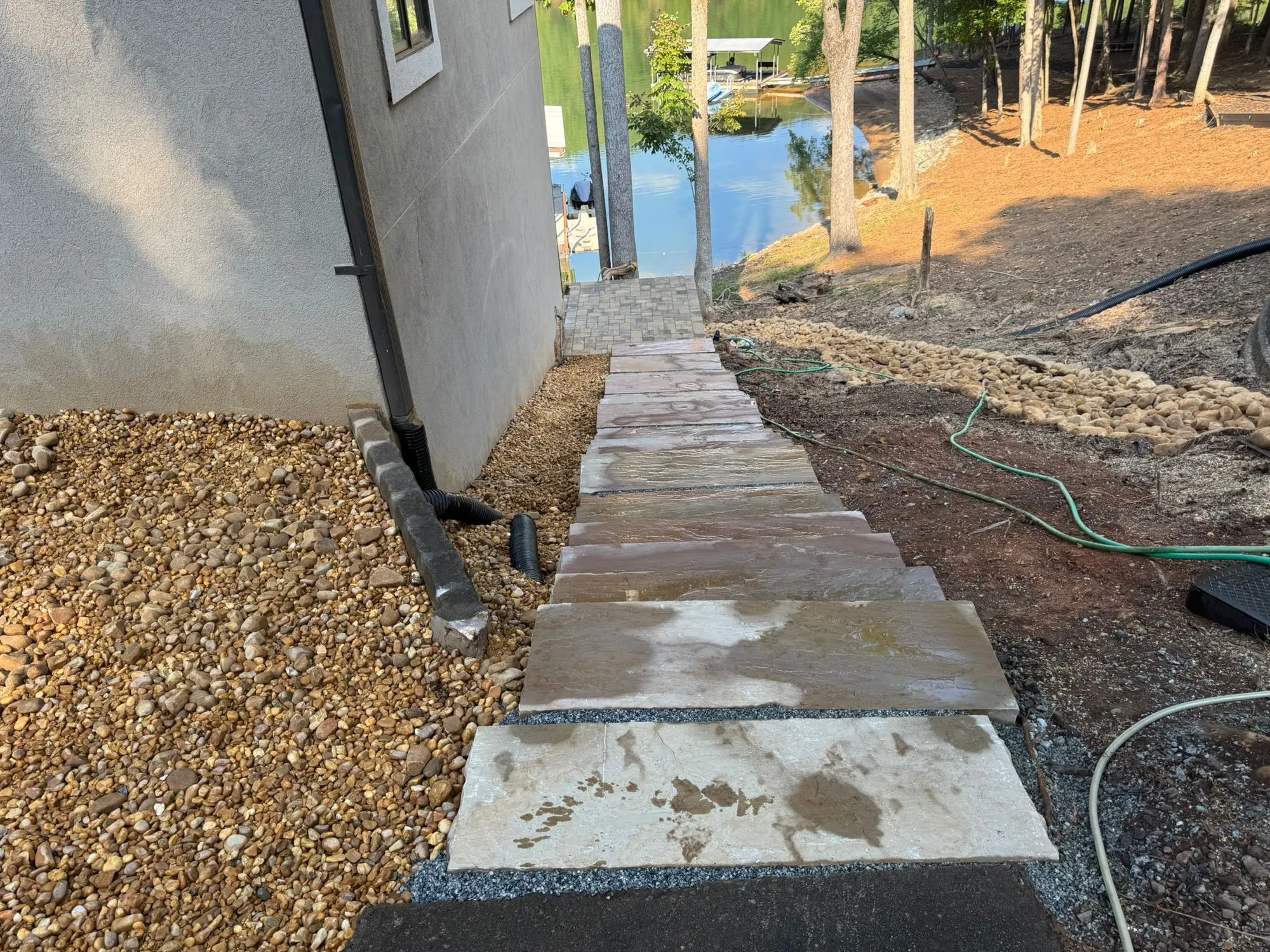 This lake lanier lake house phase 1 project in Gainesville GA showcases our commitment to quality craftsmanship and premium materials. Our team of experienced installers worked meticulously to create a stunning outdoor space that will last for years to come.